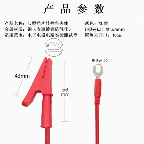 6mmU型夾轉(zhuǎn)鱷魚夾線PK1049搖表/兆歐表筆測試專用
