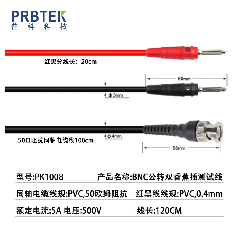 BNC公轉(zhuǎn)雙香蕉插紅黑線連接測試線PK1008